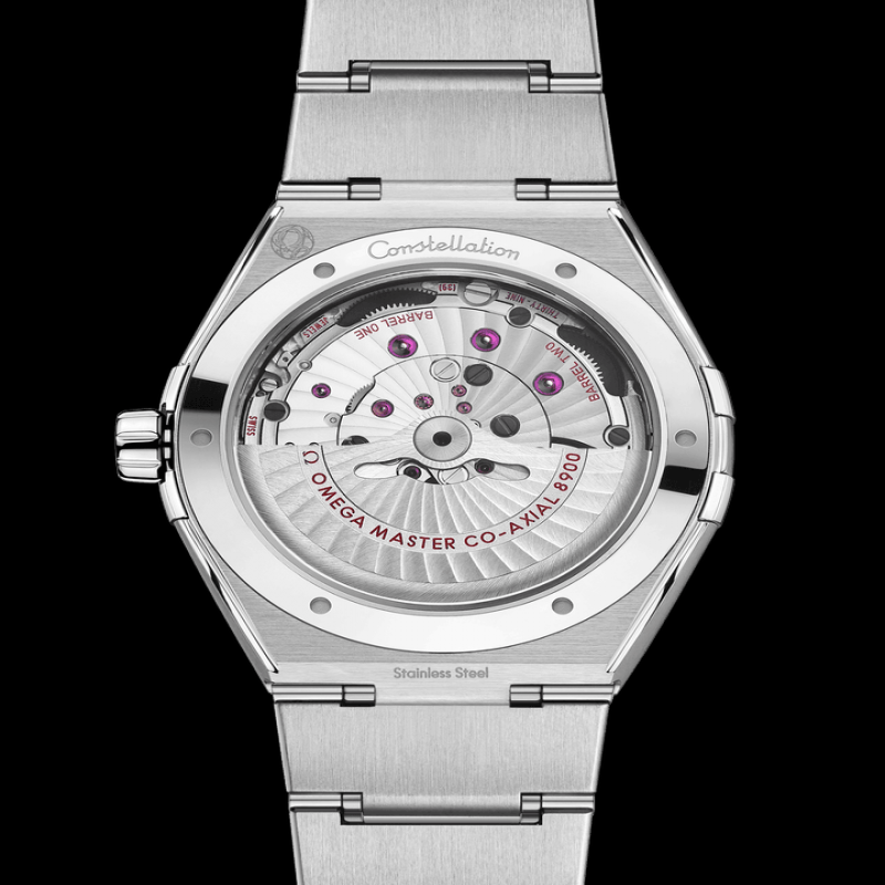 機芯 機芯:歐米茄8900 自動上鍊同軸機芯。瑞士聯邦計量研究院(METAS)認 證至臻天文台機芯,抵抗高達15,000高斯的強磁場。搭載 矽遊絲的無卡度遊絲擺輪,兩個串聯的發條盒,雙向 自動上鍊系統。時區功能。鍍銠自動陀和夾板,表面經特 別奢華處理,以及阿拉伯風格的日內瓦波紋的打磨裝飾。 動力儲存: 60小時