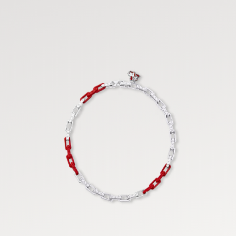 本款Monogram Chain項鍊以摩登筆觸串聯精鋼、再生樹脂和有機玻璃鏈環,為金屬鏈環鏤刻Monogram圖案,彰顯路易威登精湛匠藝。 LV字母再添品牌格調,與同款手鏈搭配相宜。